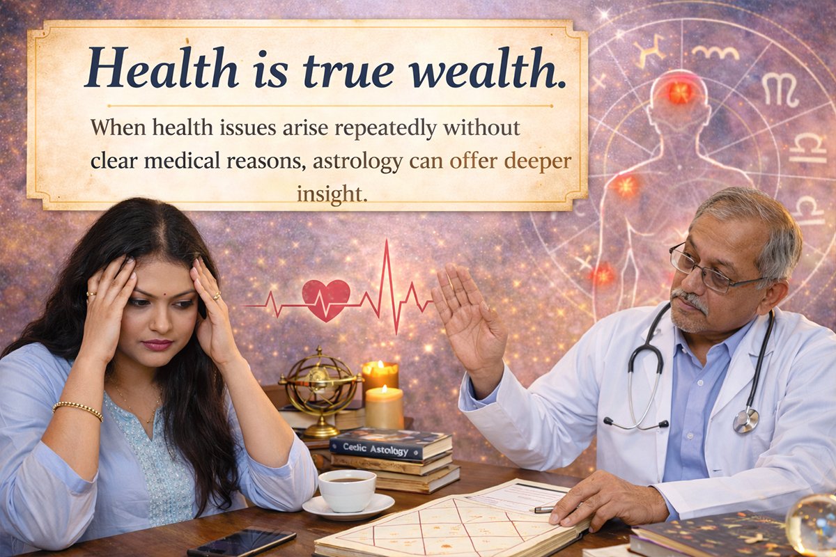 Health is true wealth. When health issues arise repeatedly without clear medical reasons, astrology can offer deeper insight. Health astrology focuses on understanding physical, mental, and emotional well-being through planetary positions in the birth chart.